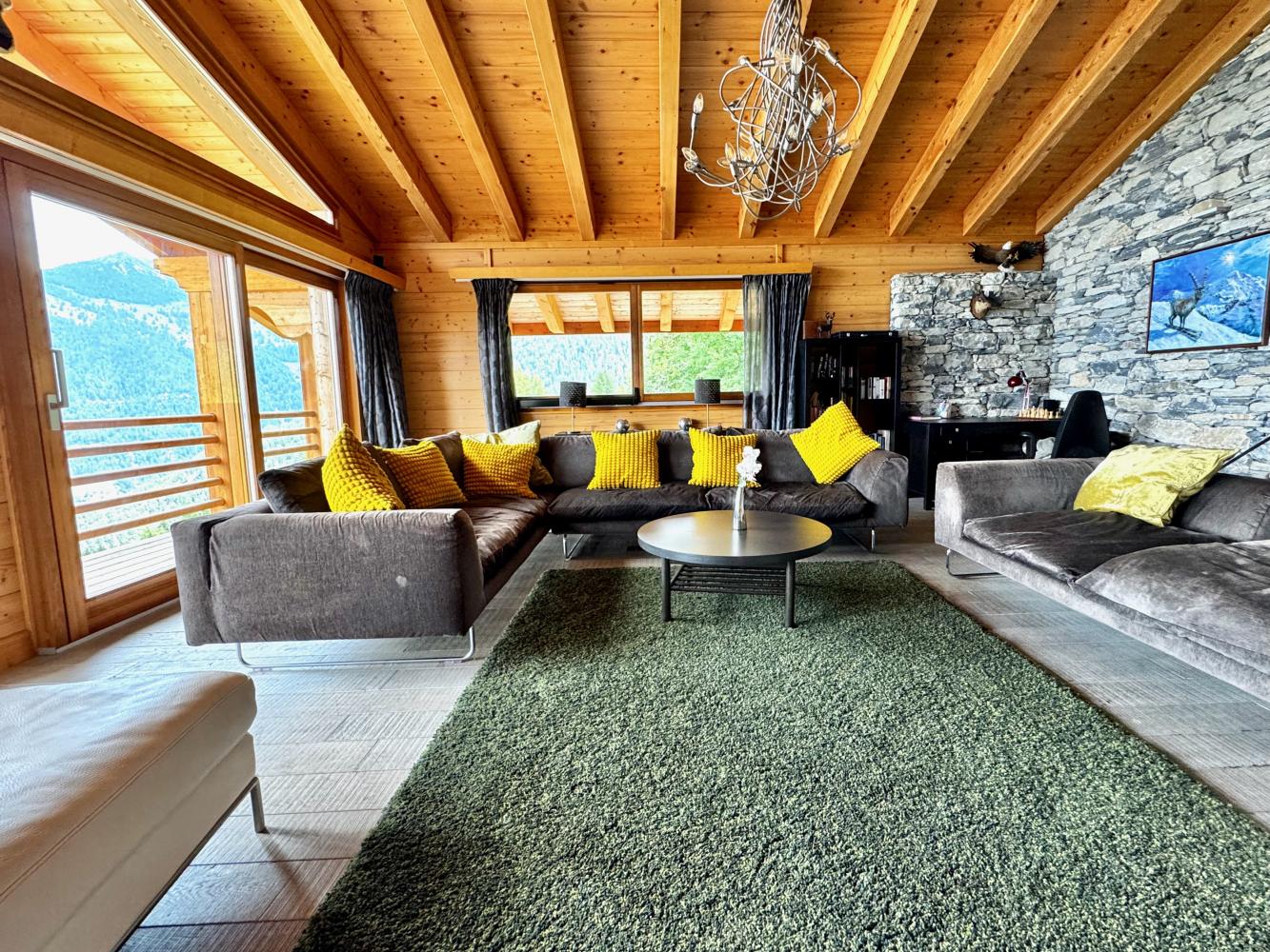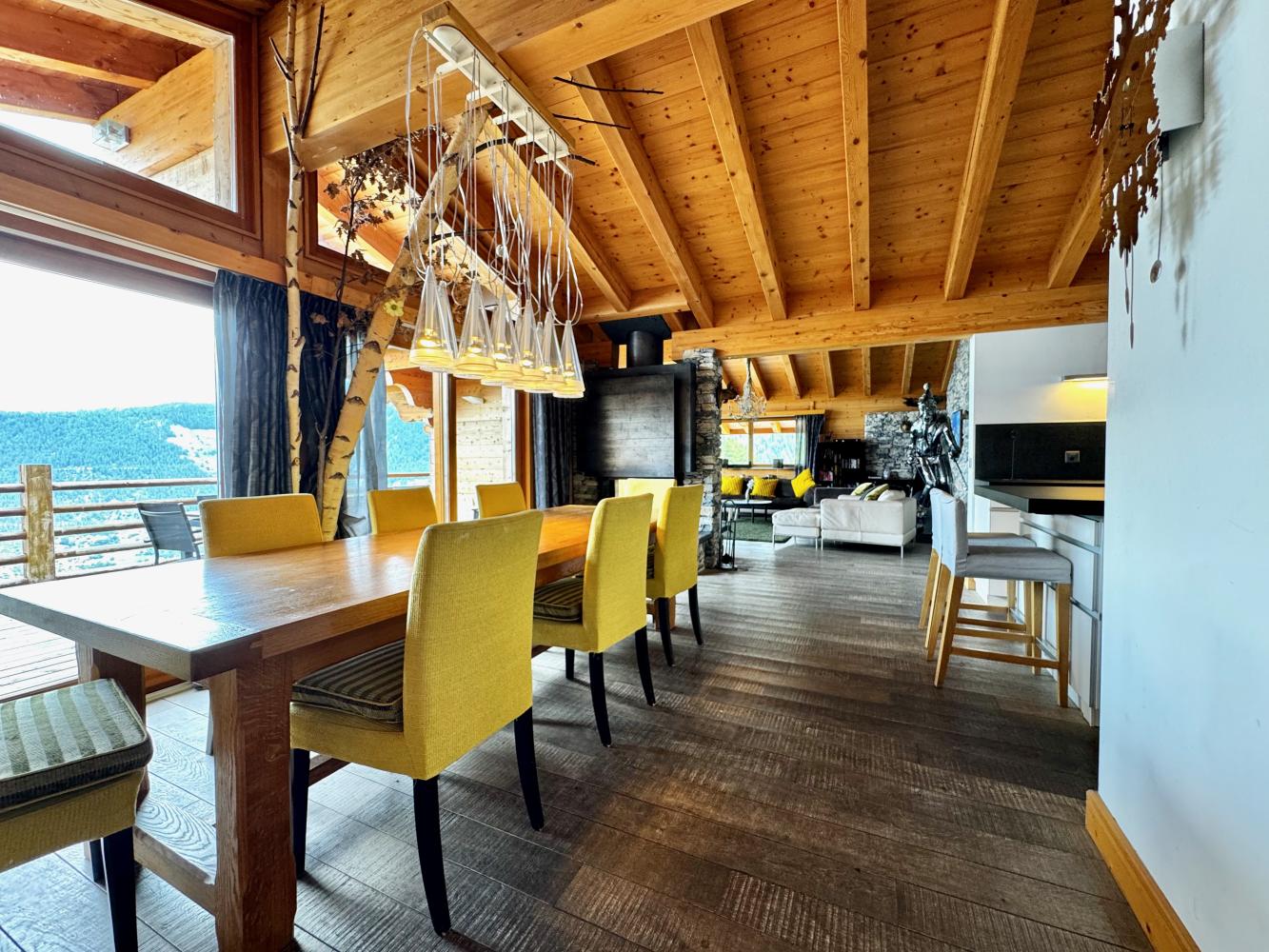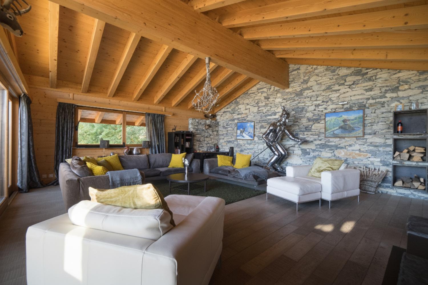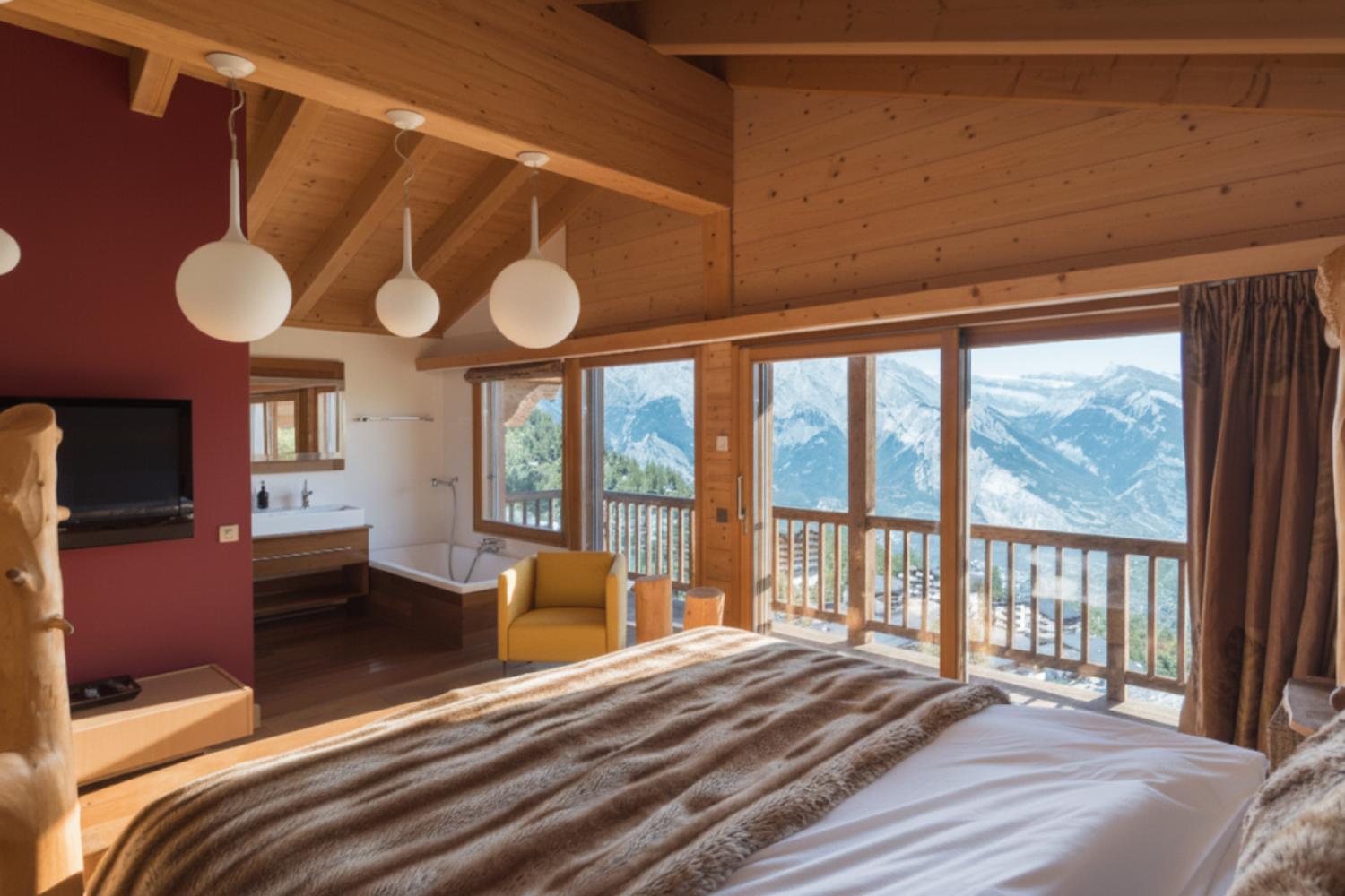 This stunning freestanding chalet offers breathtaking views over the Rhone valley and beyond in the heart of the 4 Valleys ski system. It is a uniquely spacious place both for families and groups. The chalet is spread over two floors perched on the side of the mountain. Access is directly from the piste by a small private funicular lift which will also deliver you from the road or garage to the front door.