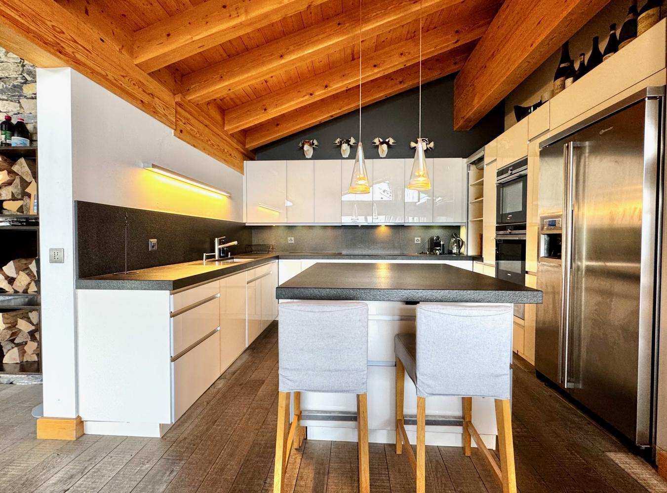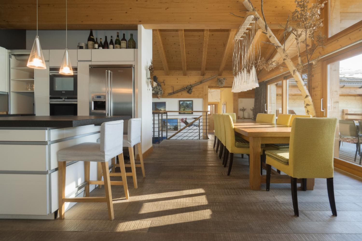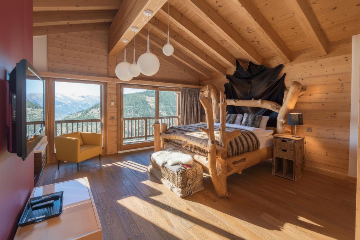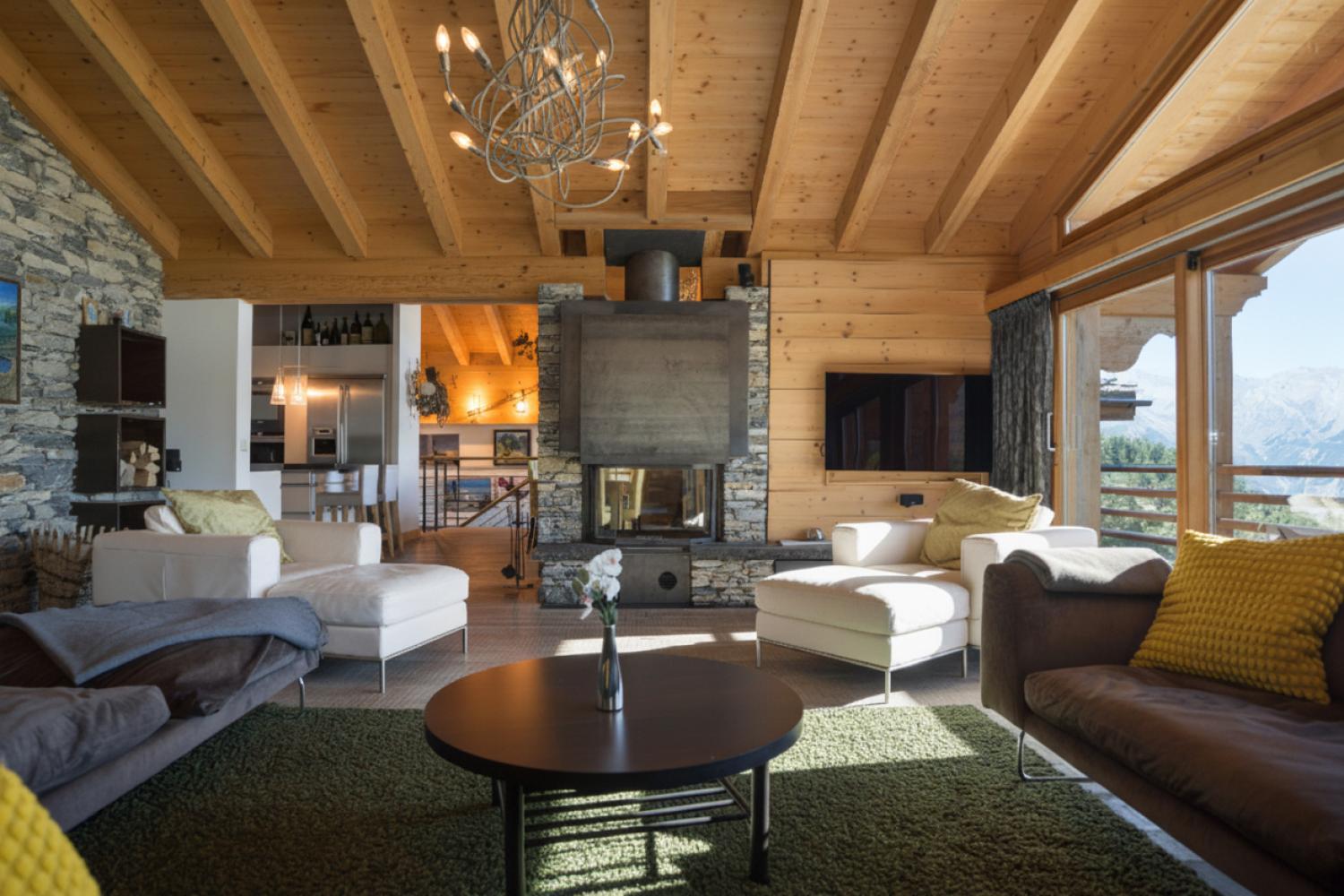 This stunning freestanding chalet offers breathtaking views over the Rhone valley and beyond in the heart of the 4 Valleys ski system. It is a uniquely spacious place both for families and groups. The chalet is spread over two floors perched on the side of the mountain. Access is directly from the piste by a small private funicular lift which will also deliver you from the road or garage to the front door.