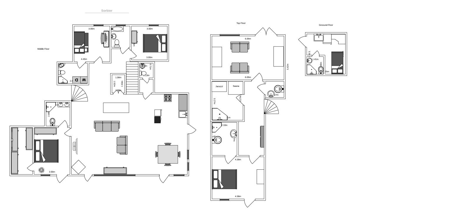 On the same floor, there is a guest double/twin room with ensuite bathroom, plus another guest room with lits gigognes, currently with a large desk so that it can double as an office space and its own shower room with washer/dryer.