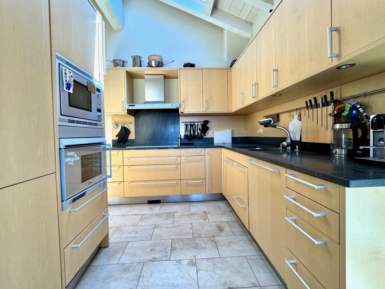 Down from the living room level is a nanny room with kitchenette and ensuite shower. There is ample storage throughout. The kitchen is well fitted with all equipment you could need and high end appliances.