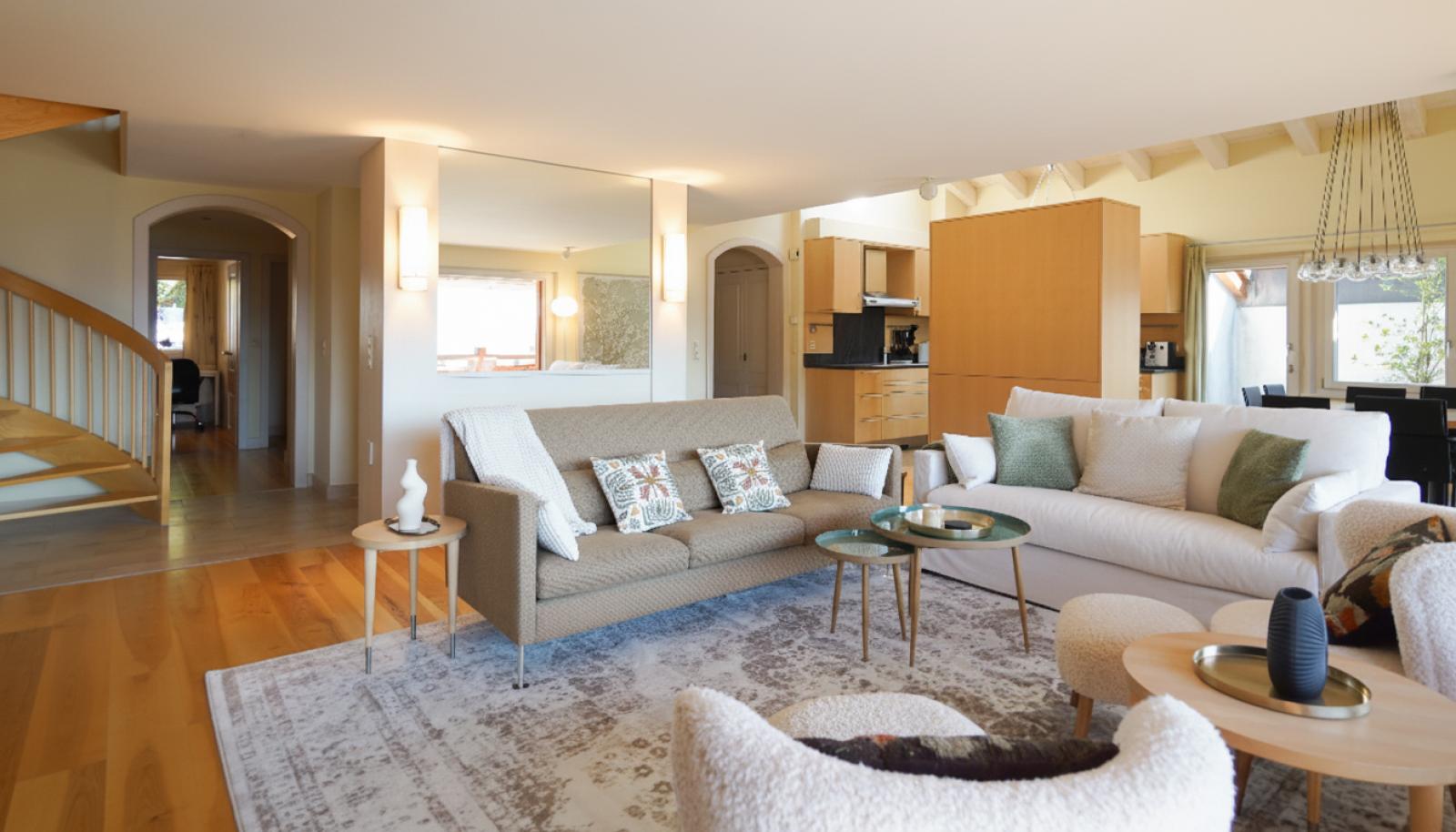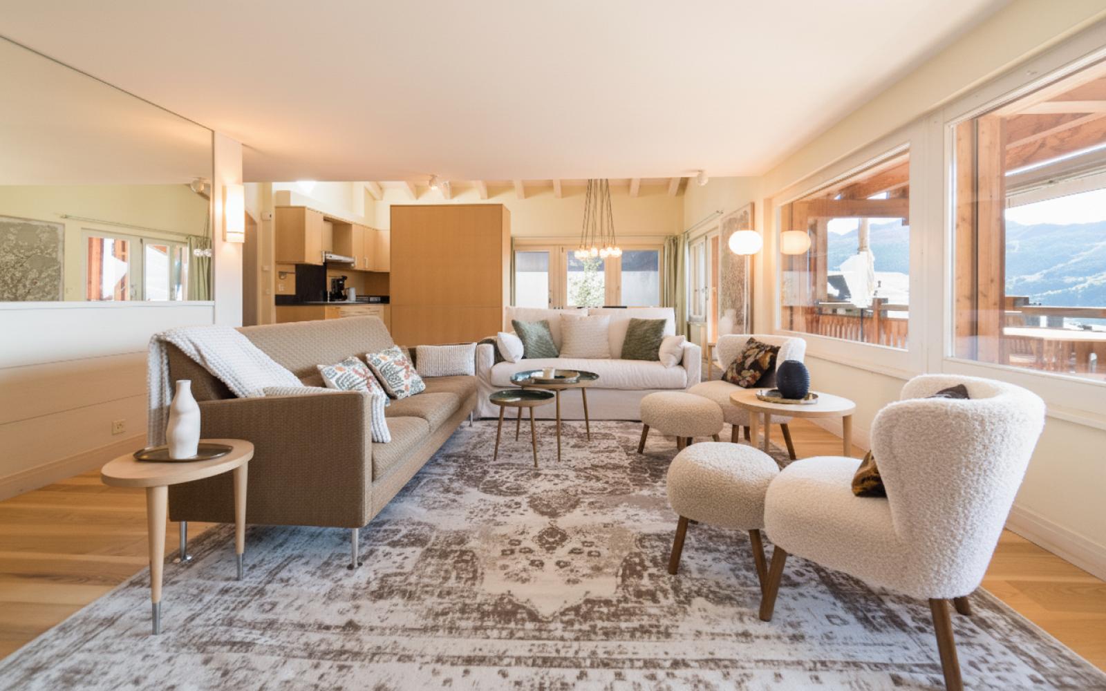 This luxury penthouse duplex sleeps up to nine in four double or twin bedrooms, plus a staff room. It is a unique property in a quiet spot, right in the centre of town for easy access to bars, restaurants, shops and the schools as well as the Médran télécabine.