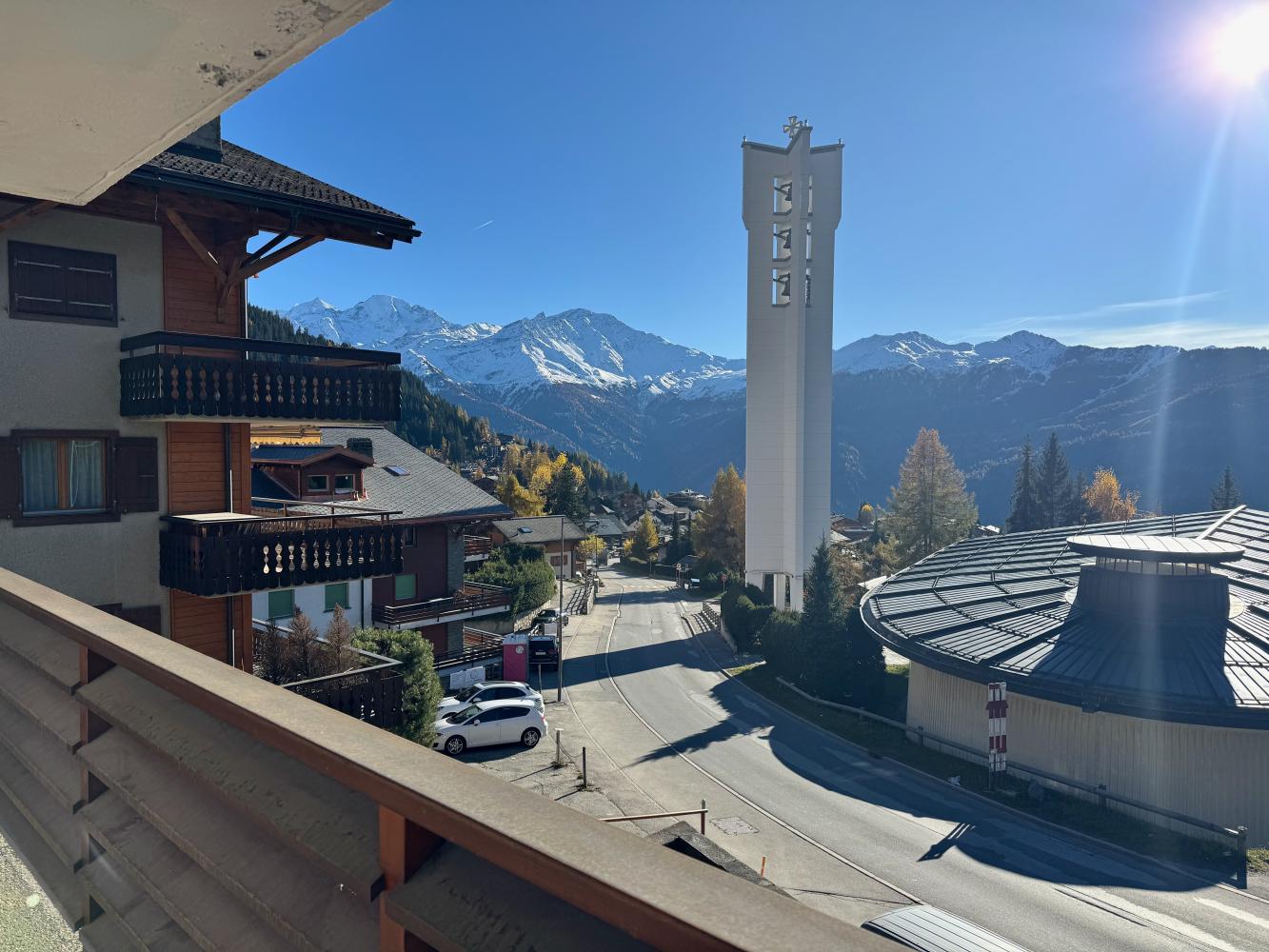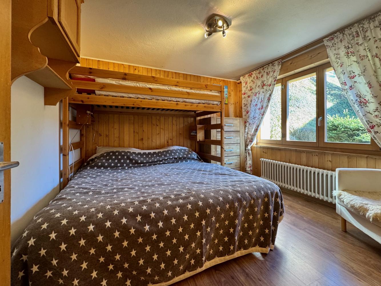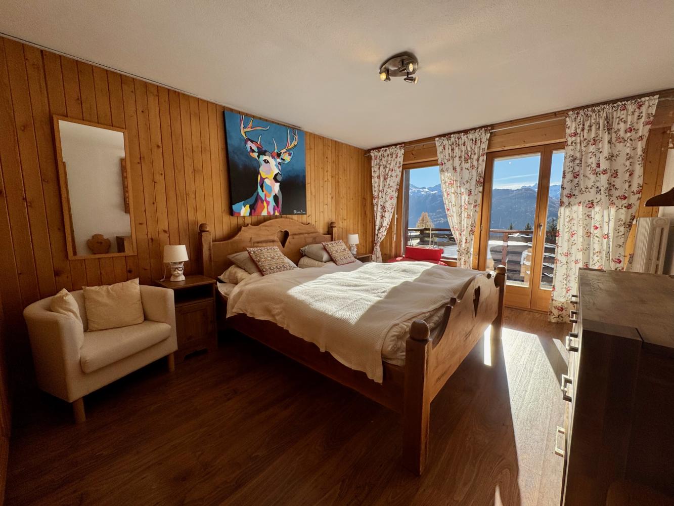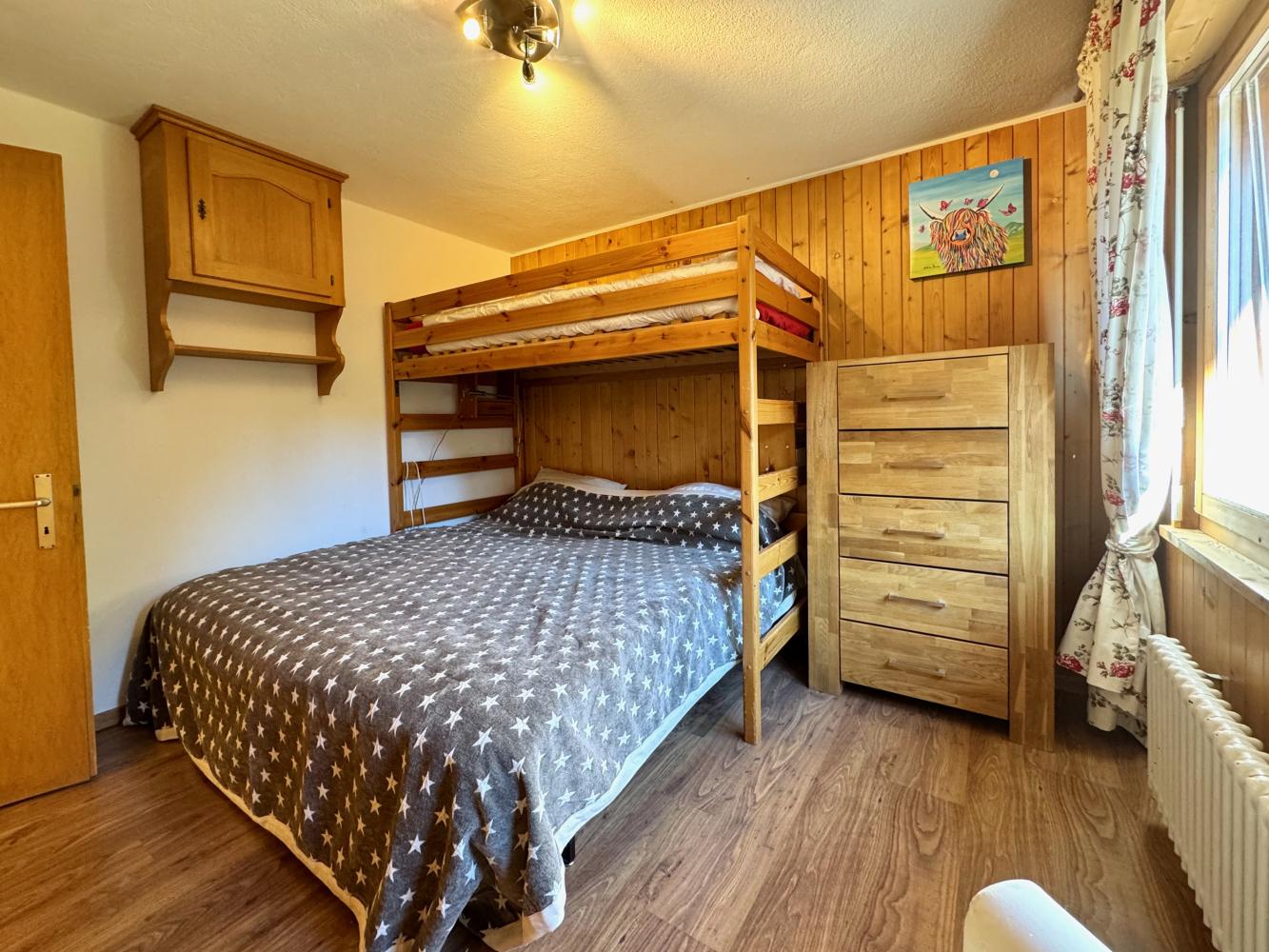 Master double/twin bedroom on separate mattresses with balcony and mountain views, second bedroom has twin beds with another overhead single, so sleeps 5 in total.