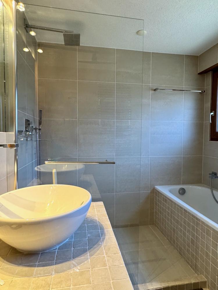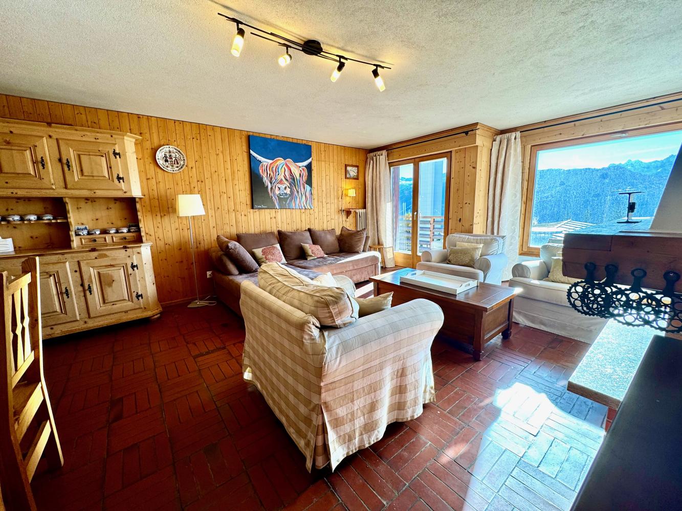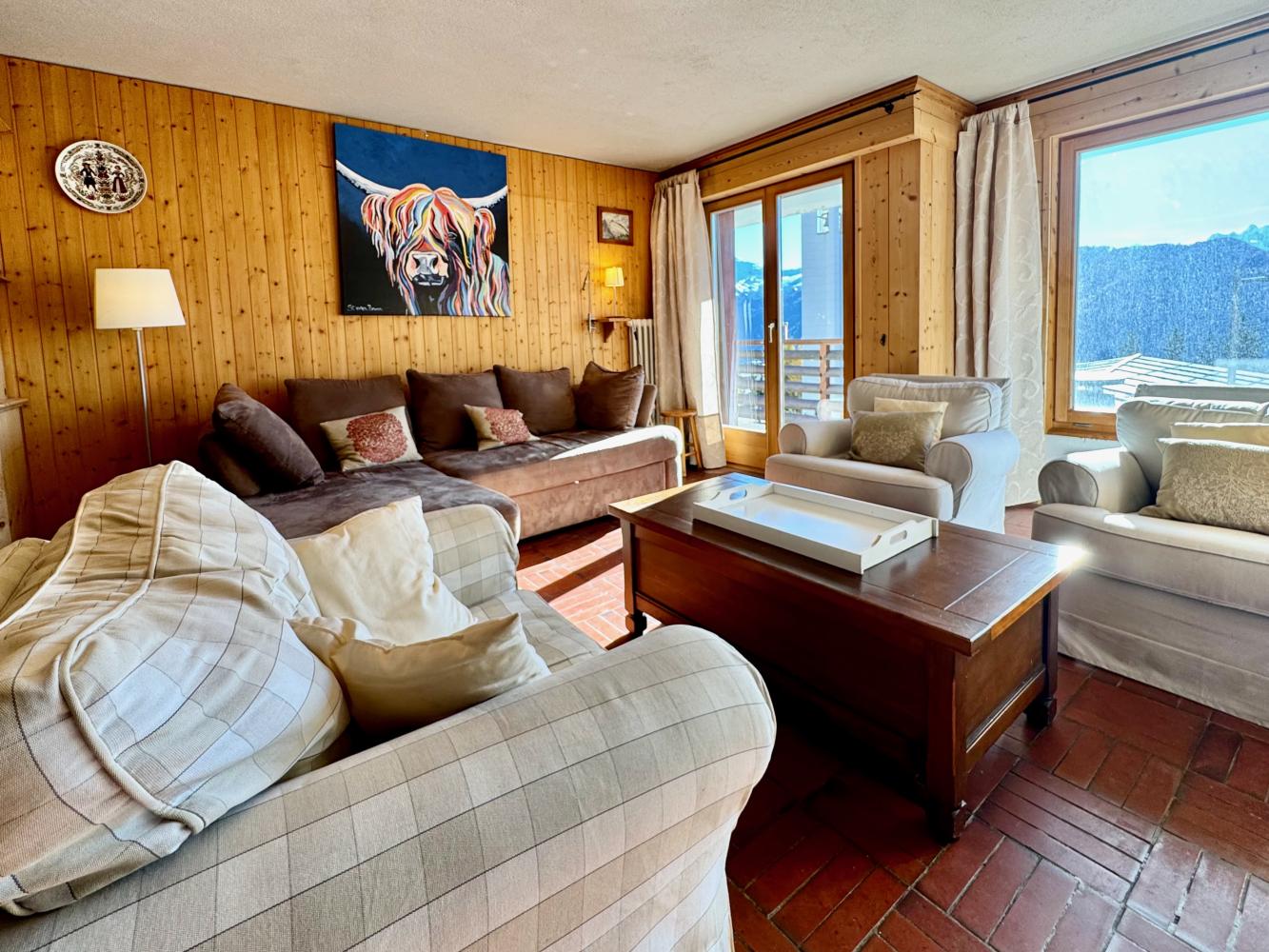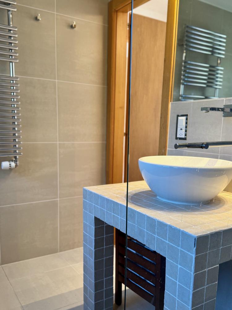 Master double/twin bedroom on separate mattresses with balcony and mountain views, second bedroom has twin beds with another overhead single, so sleeps 5 in total.