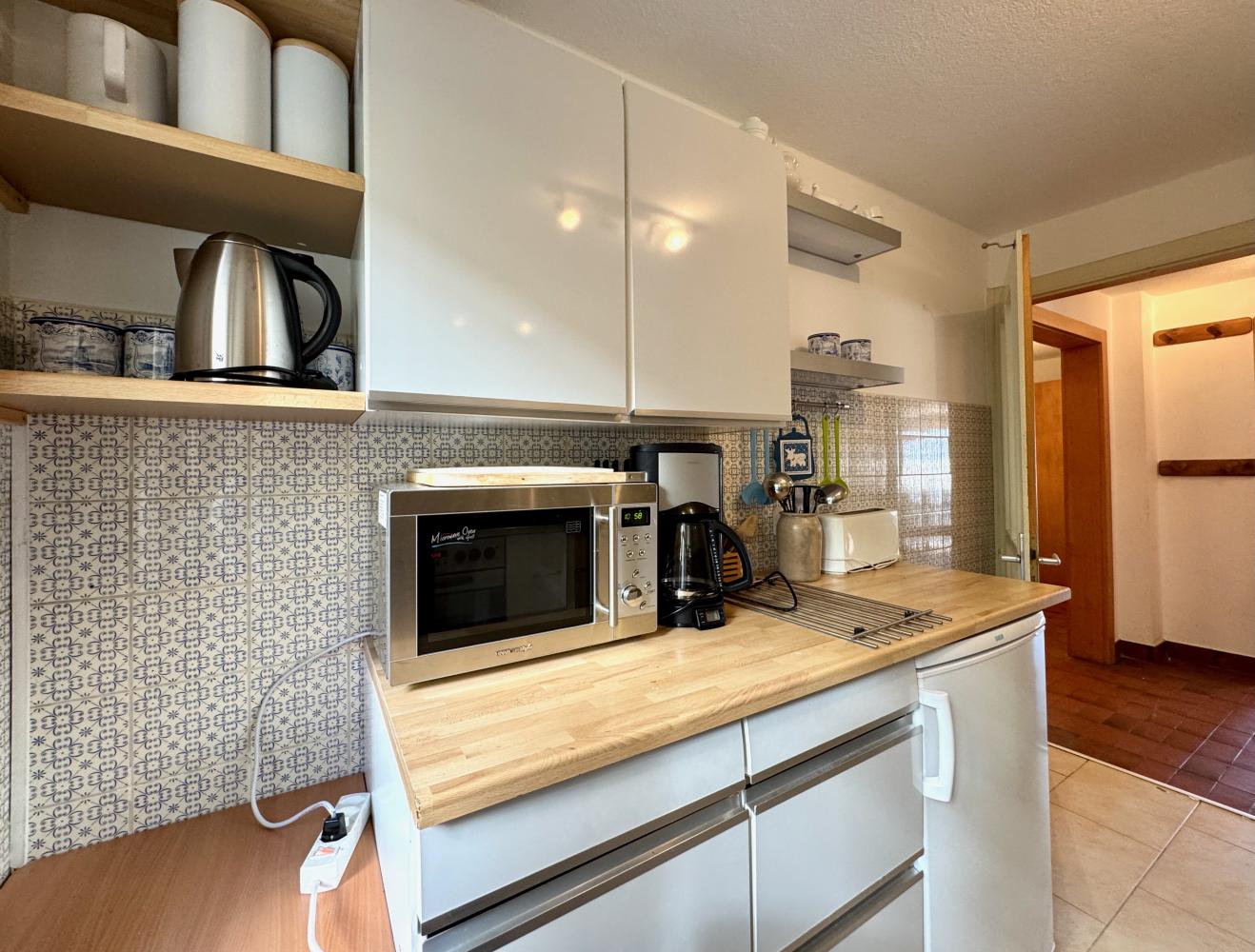 Open plan living room with dining area has a fireplace for aesthetics only (no fires) and balcony. The well equipped kitchen is separate. There is access to a shared washer/dryer in the building. Cable TV & wifi are connected.